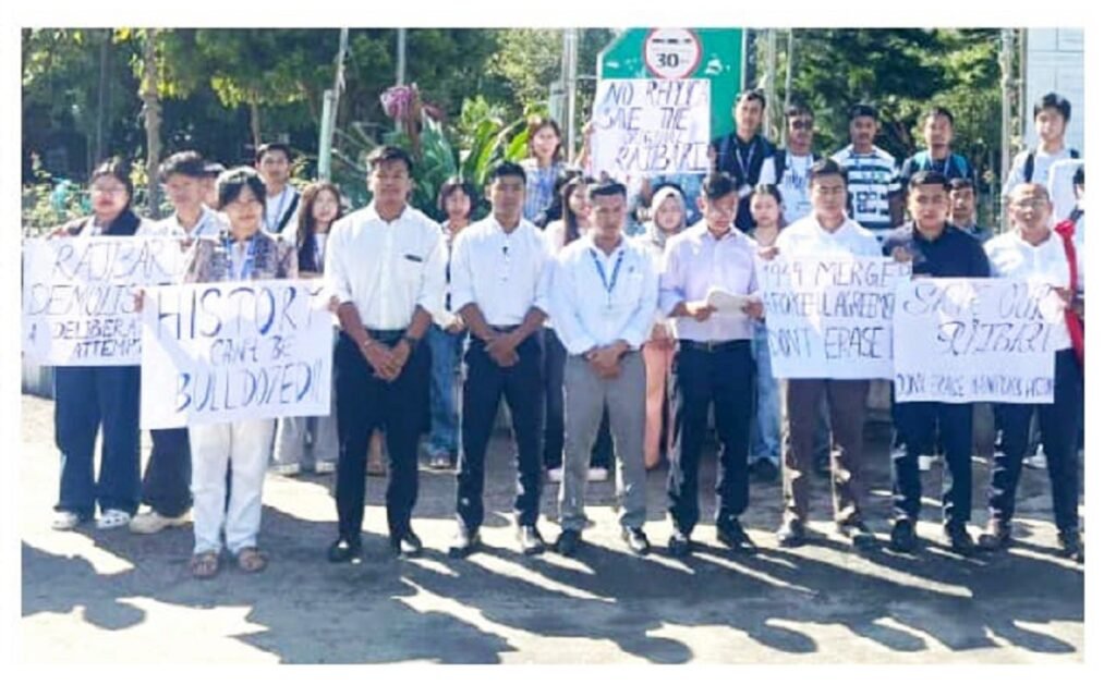 মনিপুরগী পুৱারিদা খ্বায়দগী অচৌবা মফম কল্লিবা মোন্নুমেন্টশিংগী মনুংদা অমা ওইবতা নত্তনা মনীঙতম্বা, নিংথৌ পানবা মনিপুরগী অহীংবা খূদম অমসু ওইরিবা শিল্লোংদা লৈবা মনিপুরগী রাজবারি উফুল তানা থুগাইখিবগী মায়োক্তা মনিপুর য়ুনিভর্সিটি ষ্টুদেন্টস য়ুনিয়ন ( মুসু) না ঙরাং অকনবা মওংদা য়ানিংদবা ফোঙদোক্তুনা প্রোটেষ্ট তৌখ্রে। মুসুগী প্রসিদেন্ট য়াম্বেম নোংপোকঙানবনা ফোঙদোকখিবা মতূঙ ইন্না, রেদ লেন্দ হায়রগসু হেন্না মীয়াম্না খঙনরিবা শিল্লোংদা লৈবা মনিপুরগী রাজবারি অসীবু হৌখিবা ওক্টোবর ৯ দা উফুল তানা থুগাইখিবগী থৌওং অসী লৌতূনবগী অচৌবা খূদম অমনি।